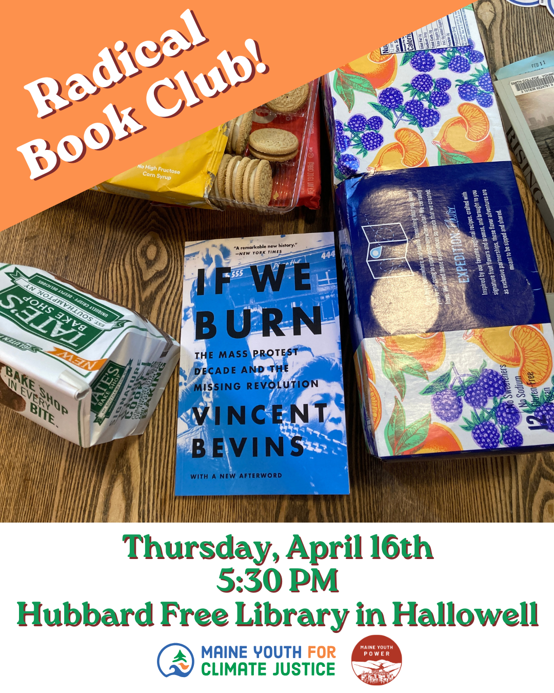 Maine Youth for Climate Justice and Maine Youth Power are launching a Book Club! Our current read is If We Burn by Vincent Bevins.